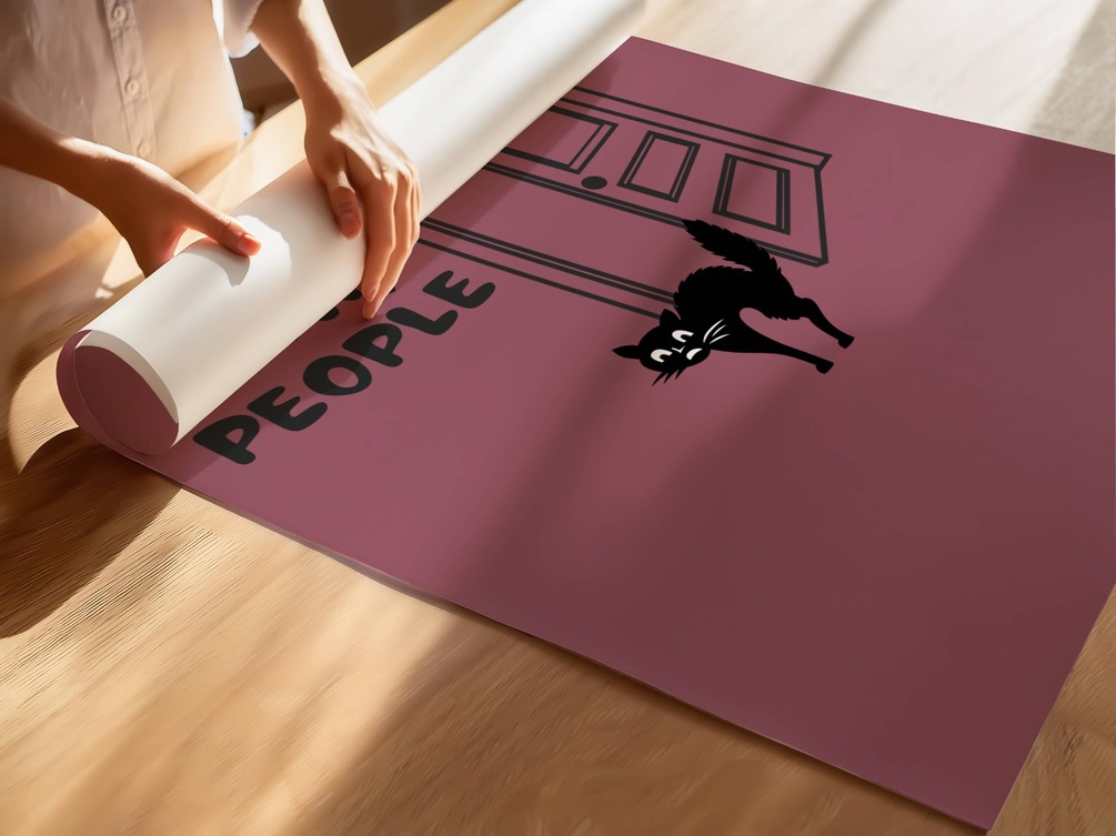 Bring a dose of humor and personality to your walls with this minimalist digital wall art featuring a sassy black cat and the quote “Eww, People.”