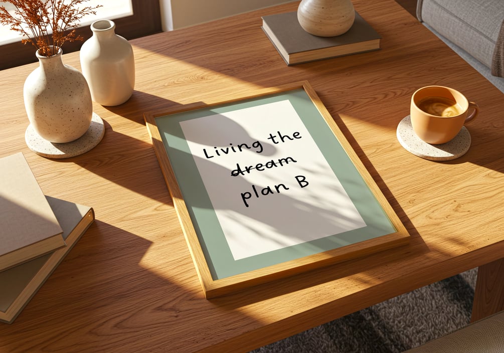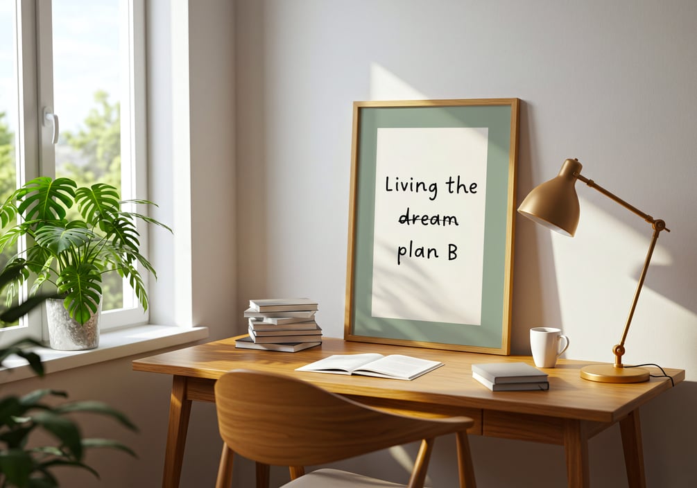 A minimalist printable poster with the message “Living the Plan B” — a gentle reminder that even when life doesn’t go as planned, you can still thrive. Perfect for home offices, bedrooms, or creative spaces that need a touch of calm inspiration.